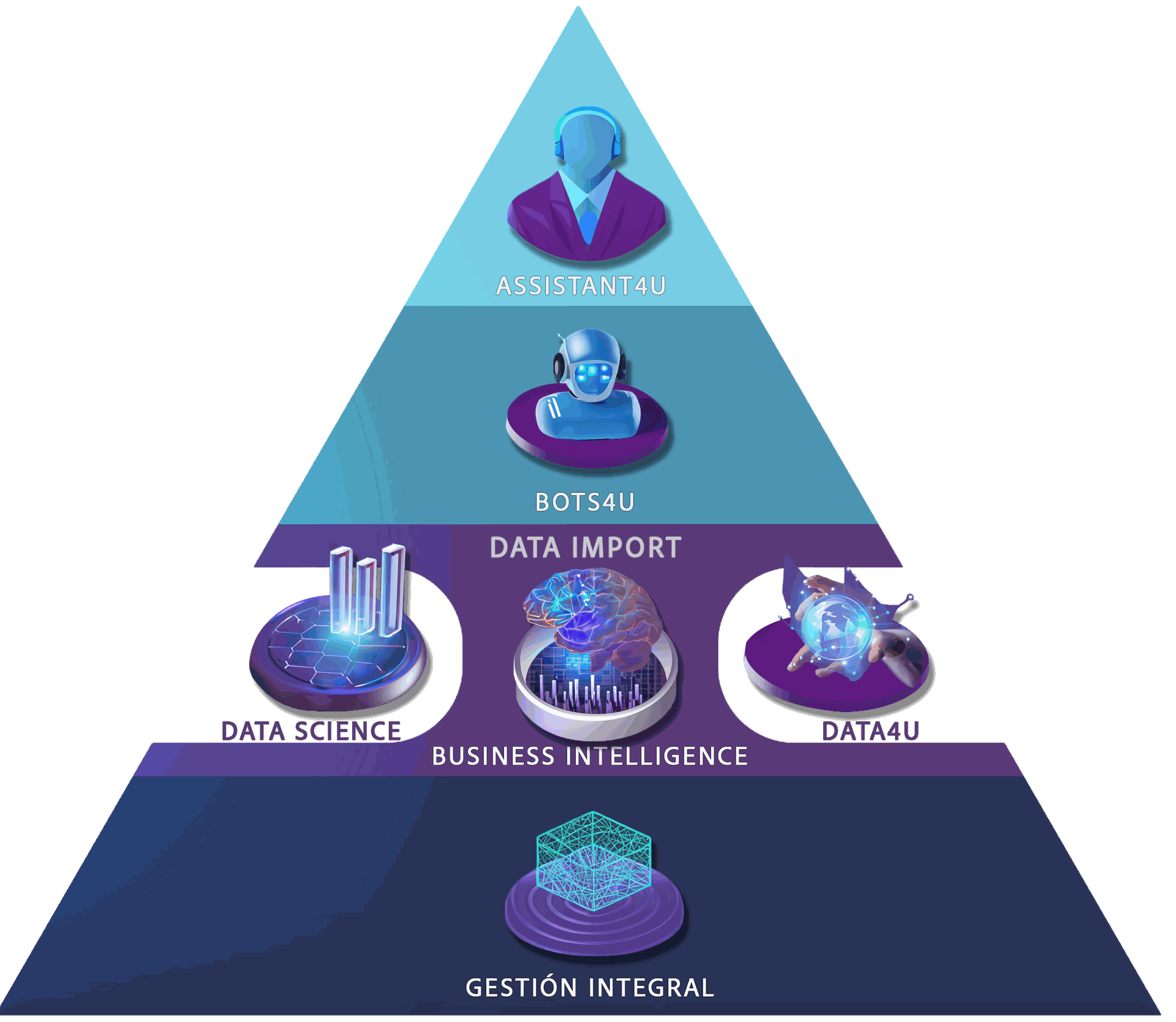 Respuesta a las necesidades de las empresas en su camino a la conquista de los datos, desde la automatización, pasando por el análisis día a día, hasta la predicción de lo que podría estar sucediendo en su negocio.